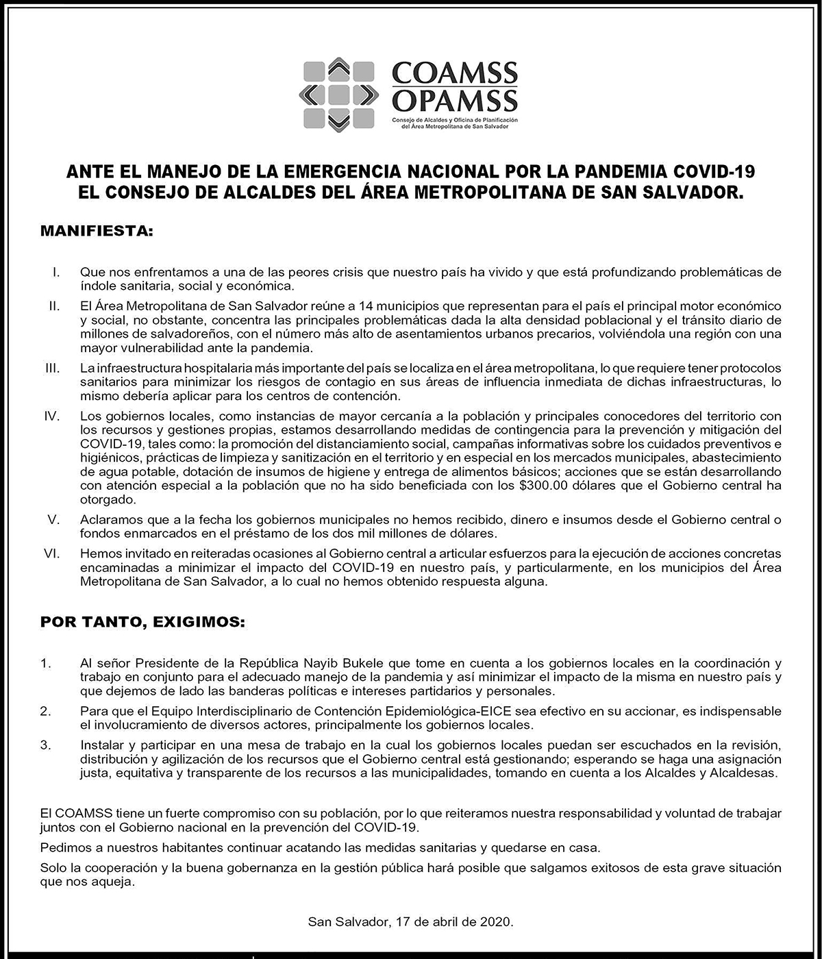 Casos confirmados en el Área Metropolitana de San Salvador