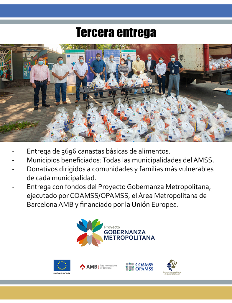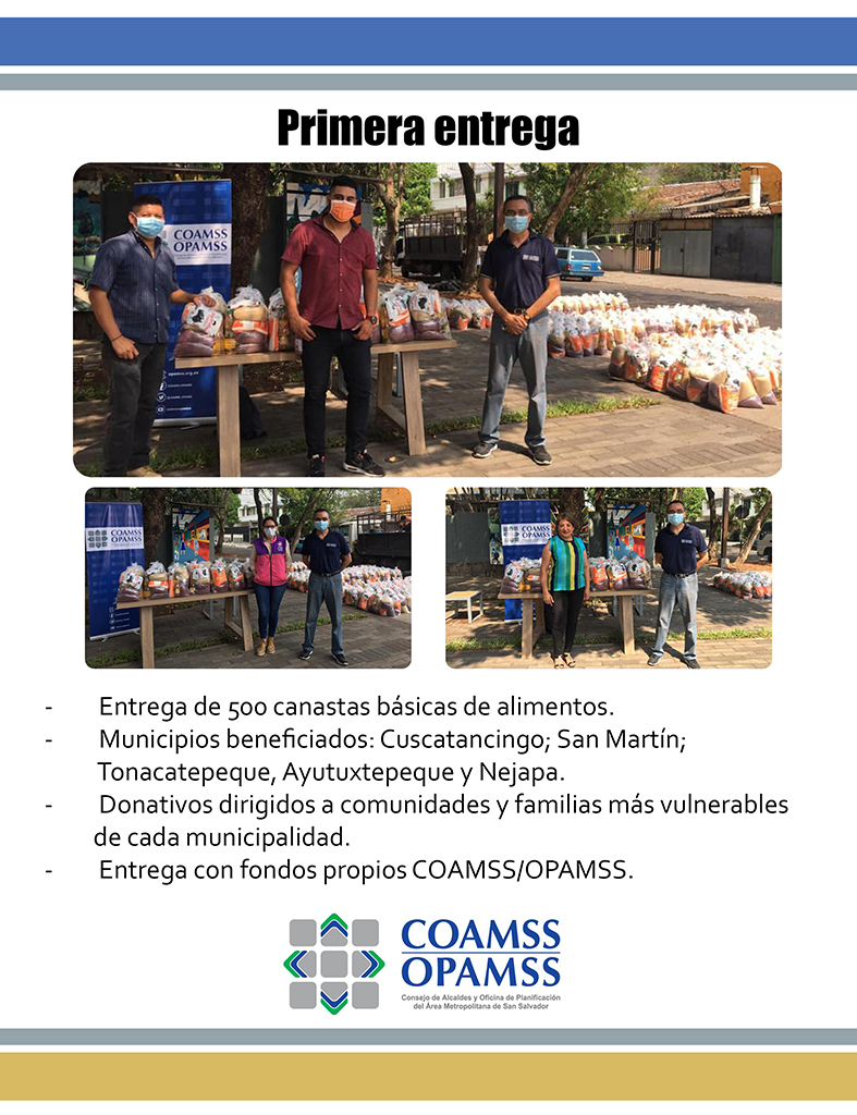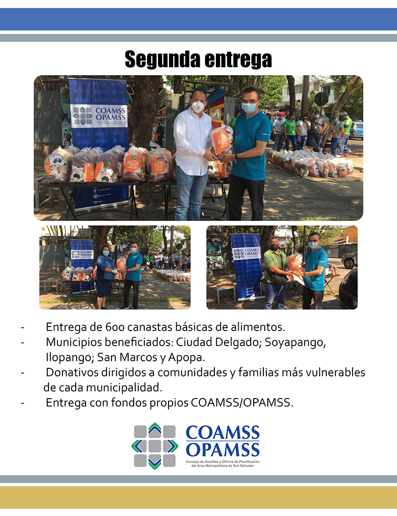 Entrega de donativos y canastas básicas por parte de COAMSS/OPAMSS y la Unión Europea